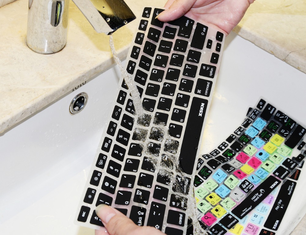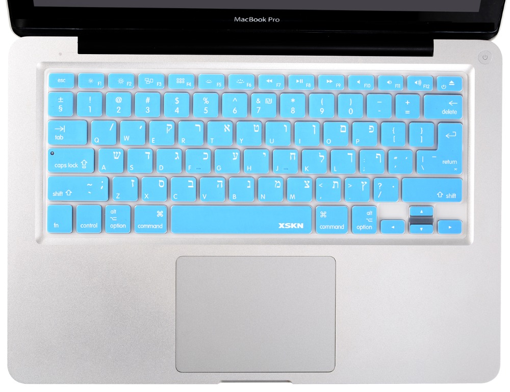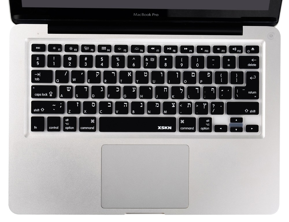 XSKN US/EU Hebrew Keyboard Cover Silicone Skin Soft Israel Keyboard Cover Skin for Apple MacBook Pro 13 15, wireless keyboard