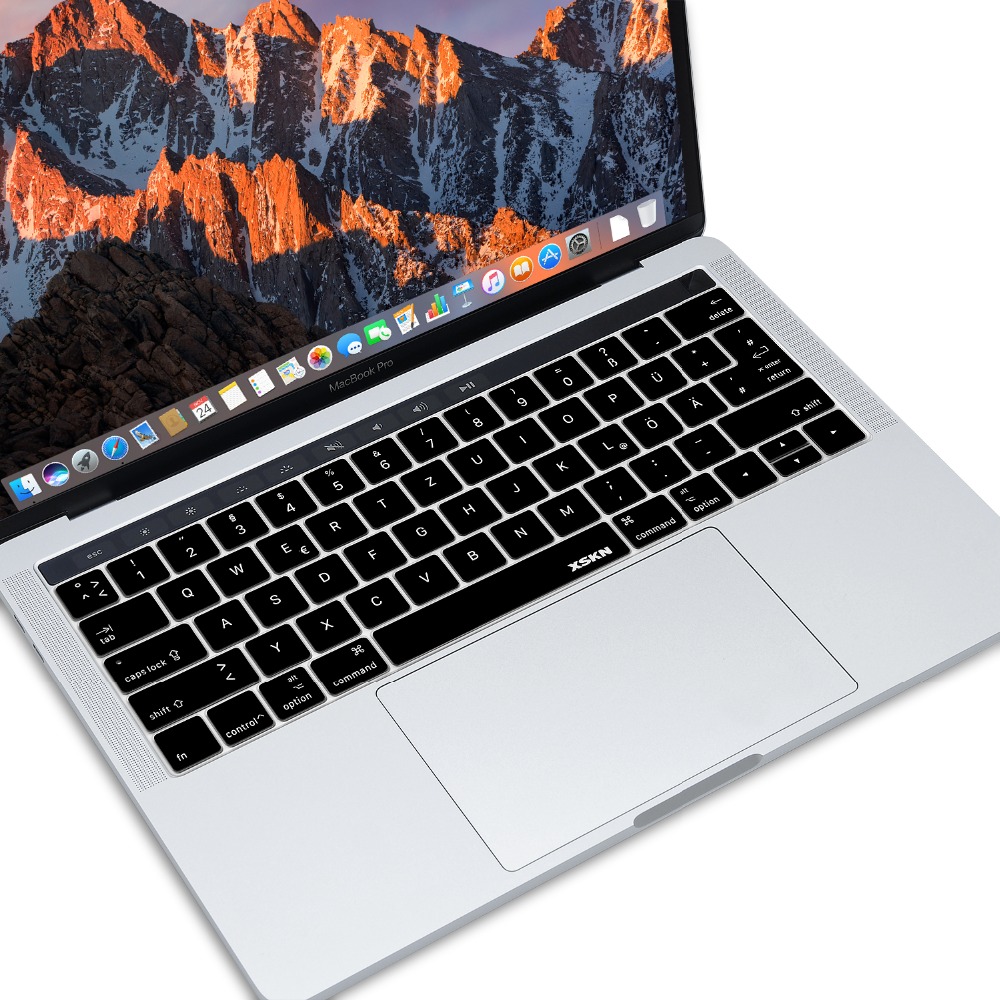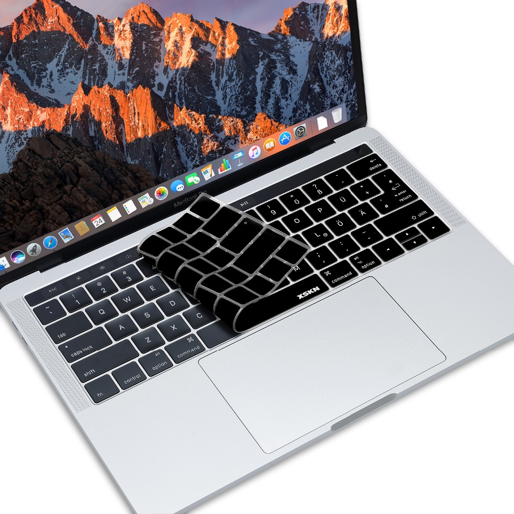 XSKN Black German Language Design Ultra Thin Silicone Keyboard Protective Skin for Touch Bar Models Macbook Pro 13" 15" /Retina 13 15 A1706 A1707