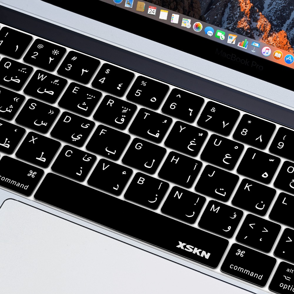 XSKN Black Arabic Language Design Ultra Thin Silicone Keyboard Protective Skin for Touch Bar Models Macbook Pro 13" 15" /Retina 13 15