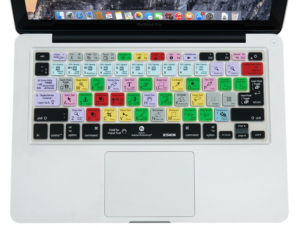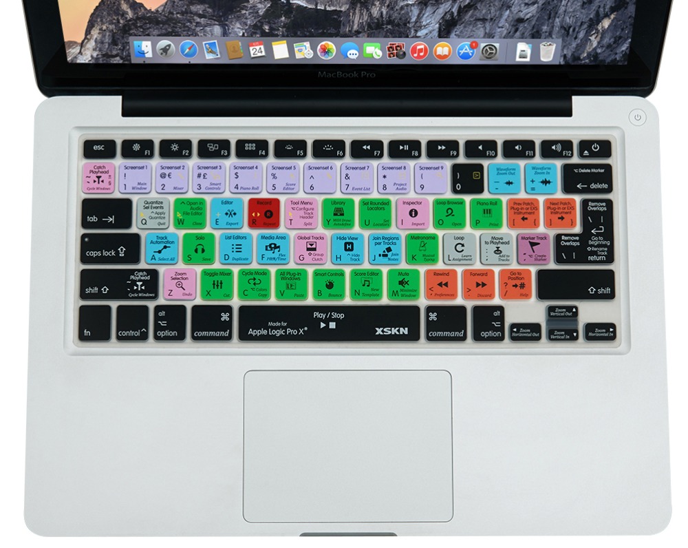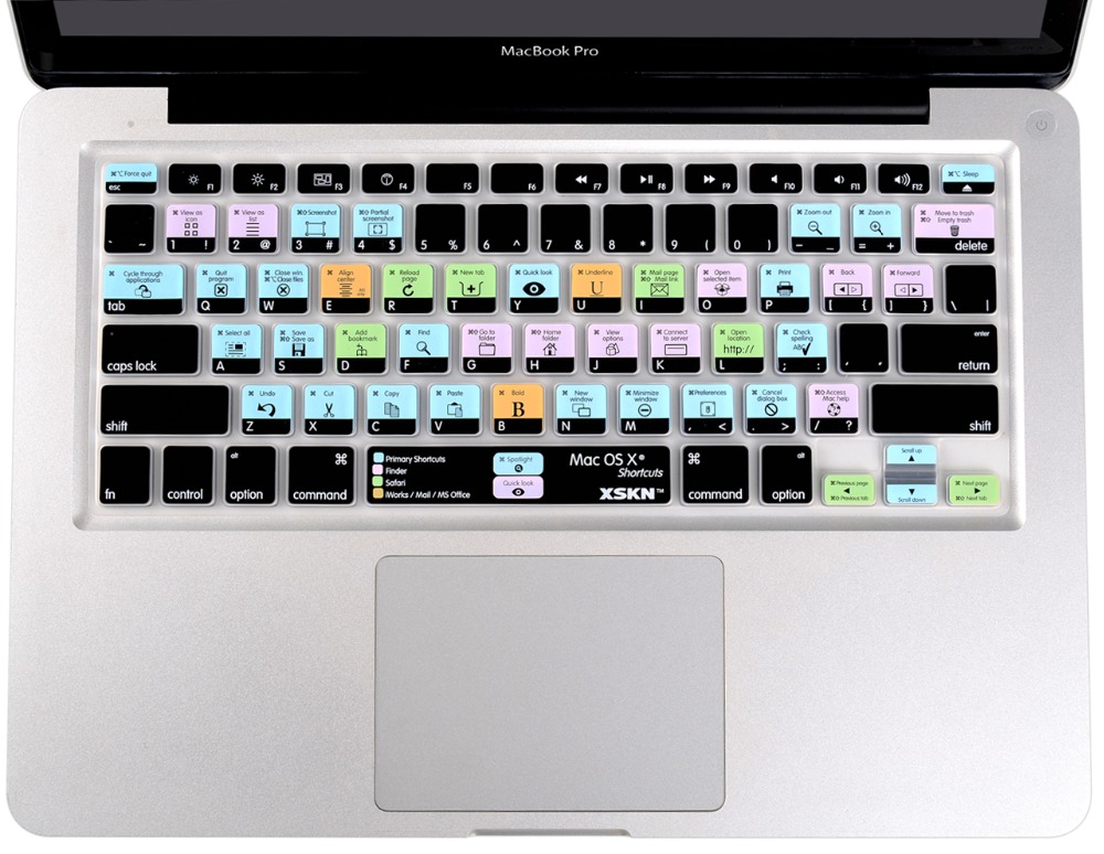 XSKN US EU Universal Silicone Soft Functional Shortcut Keyboard Cover Skin for Apple MacBook Air Pro Retina 13 15, for 2016 Macbook, wireless keyboard cover (Black)